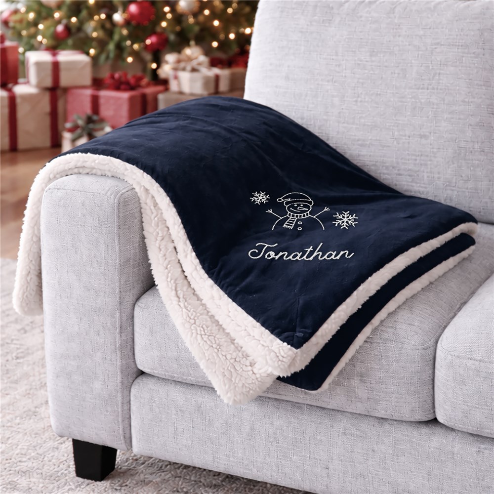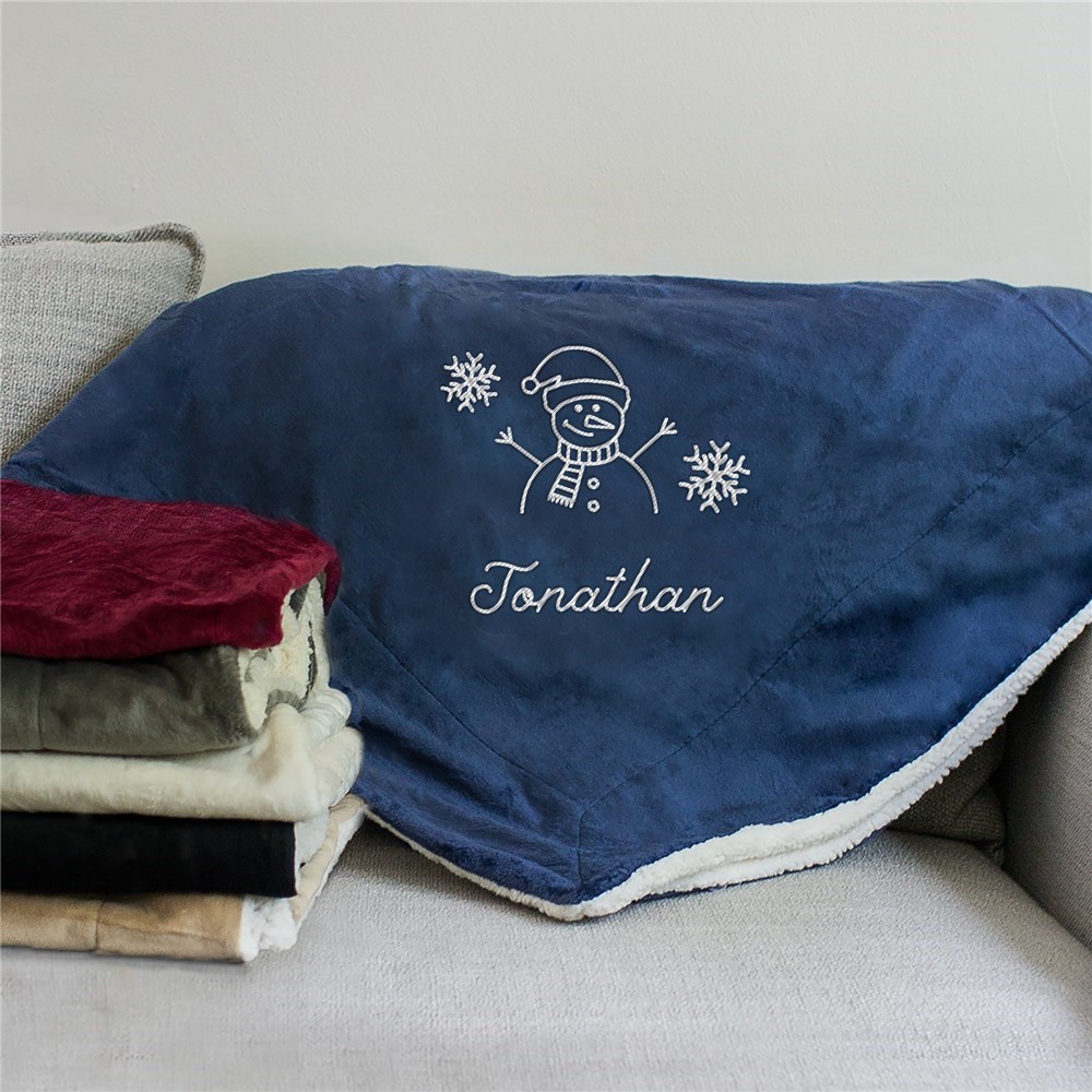 Spend cold nights snuggled by the fire this Christmas season with our Embroidered Christmas Icons Sherpa Blanket!