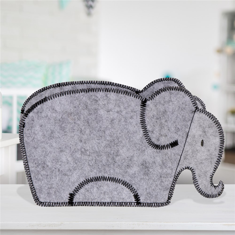 • Embroidered gray elephant storage container