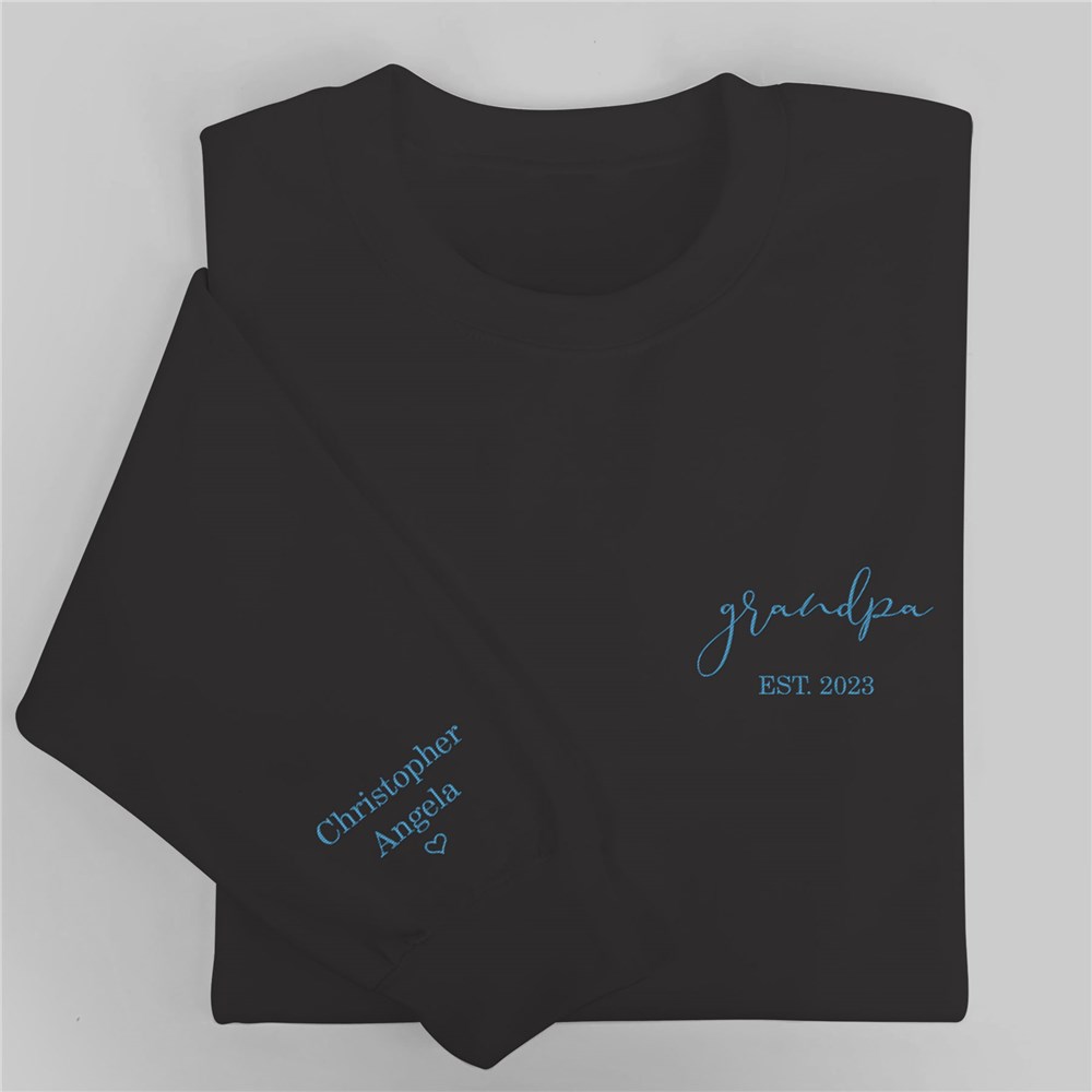 Give Grandma or Grandpa a unique piece of apparel with our Embroidered Established with Names Sweatshirt!Personalize this sweatshirt with your choice of thread color, title, year and up to 3 names.
