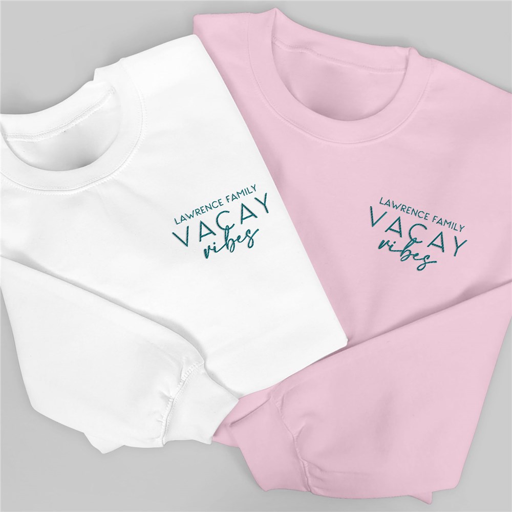 Create a fun piece of apparel for your next family vacation with our Embroidered Family Vacay Vibes Sweatshirt!