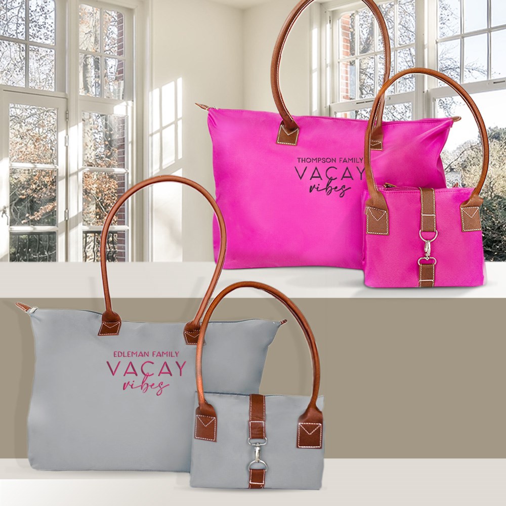 Head to the beach with everything you need with our Embroidered Family Vacay Vibes Tote Bag!Personalize this bag with your choice of thread color and custom message line.