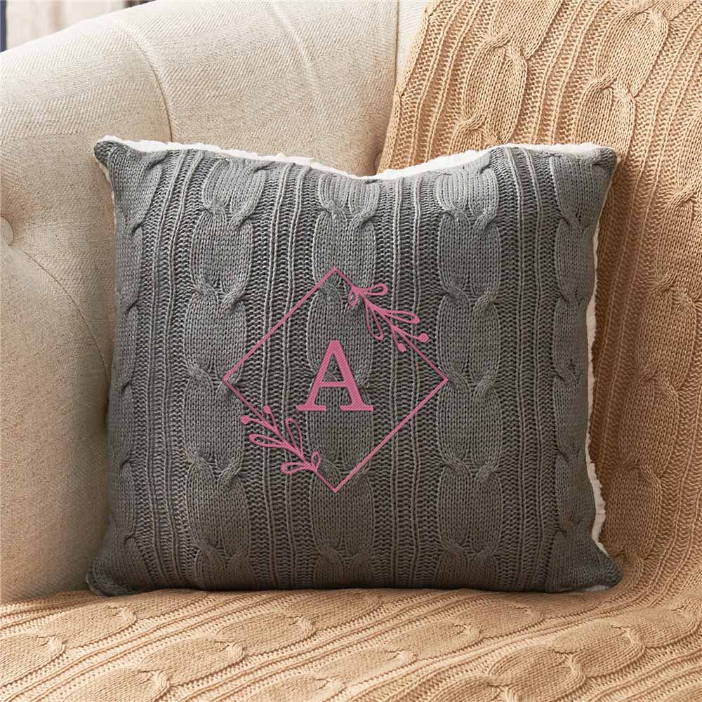 Embroidered Floral Monogram Cable Knit Throw Pillow