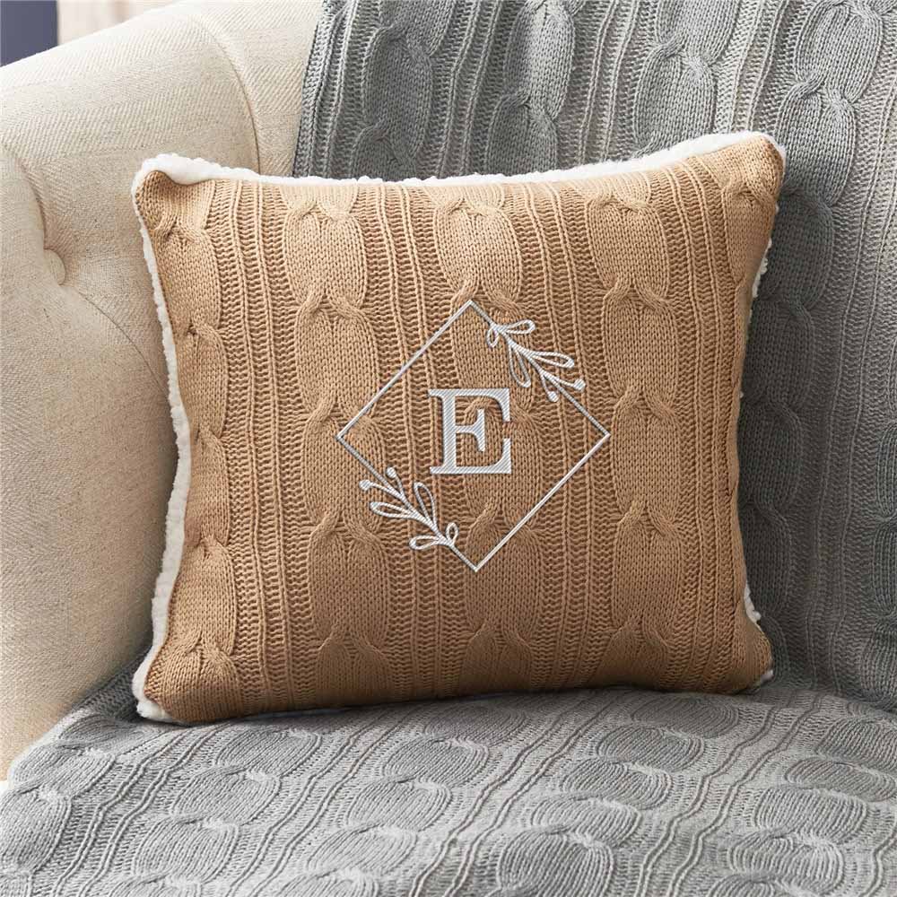 Our Embroidered Floral Monogram Cable Knit Throw Pillow will look beautiful on any family's couch this winter.