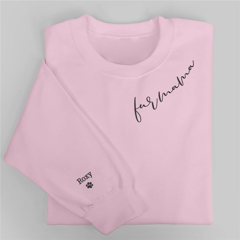 This Embroidered Fur Mama Sweatshirt is a thoughtful and stylish keepsake for dog moms, cat dads, or anyone who adores their furry companion.We will embroider this sweatshirt with your any title and up to 3 names, with your choice of thread color.