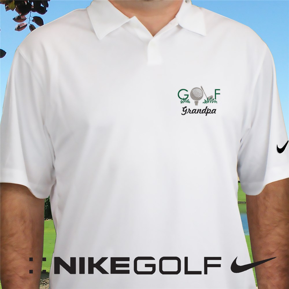 Anyone who's passionate about golf will be excited to add our Embroidered Golf Name Nike Dri-Fit White Polo Shirt to their golf attire!