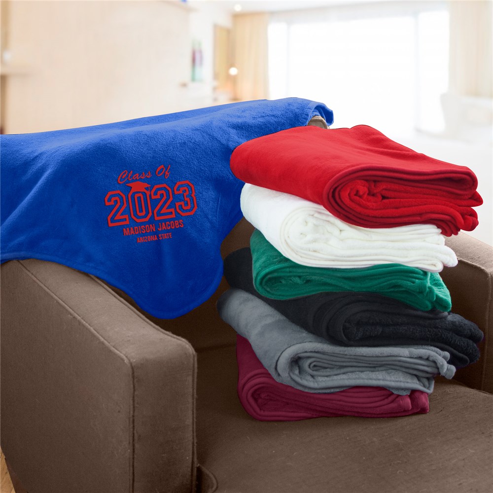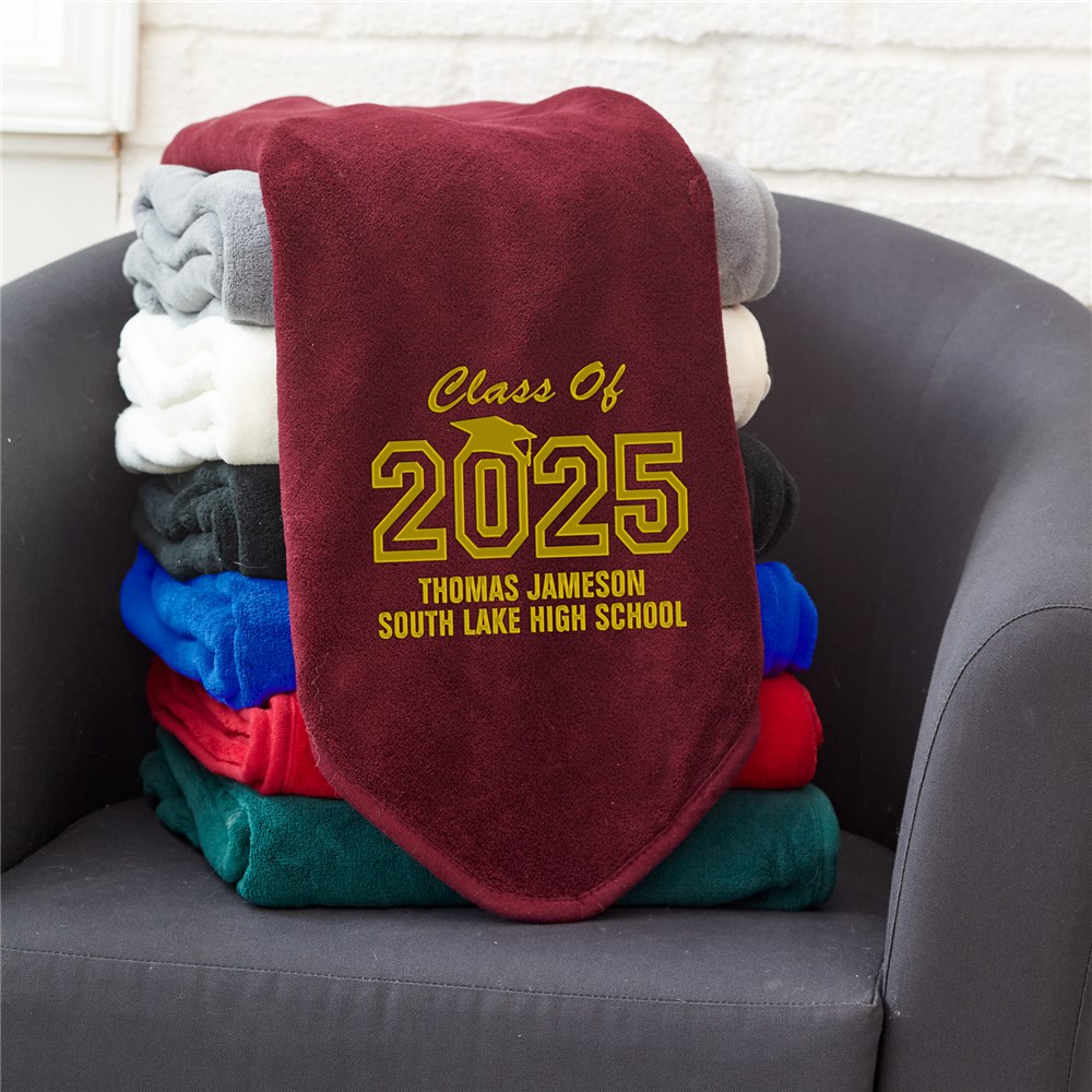 Embroidered Graduation Fleece Throw Blanket