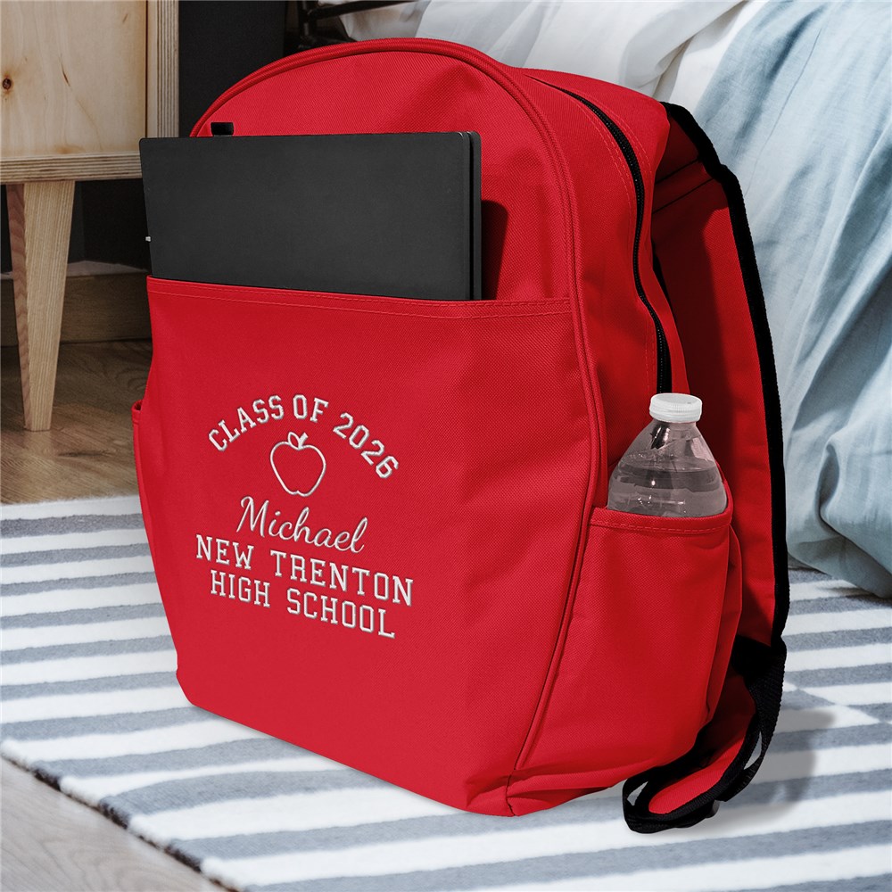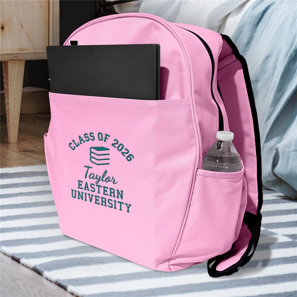 Celebrate your graduate in style with this Embroidered Graduation Icon Large Backpack, custom-made just for them. You can add any graduation year, choose from a variety of icons like a pencil, book, apple, medical symbol, stethoscope, law building, or law scales, and personalize it with their name and two custom message lines—perfect for a school name, degree, or heartfelt message.