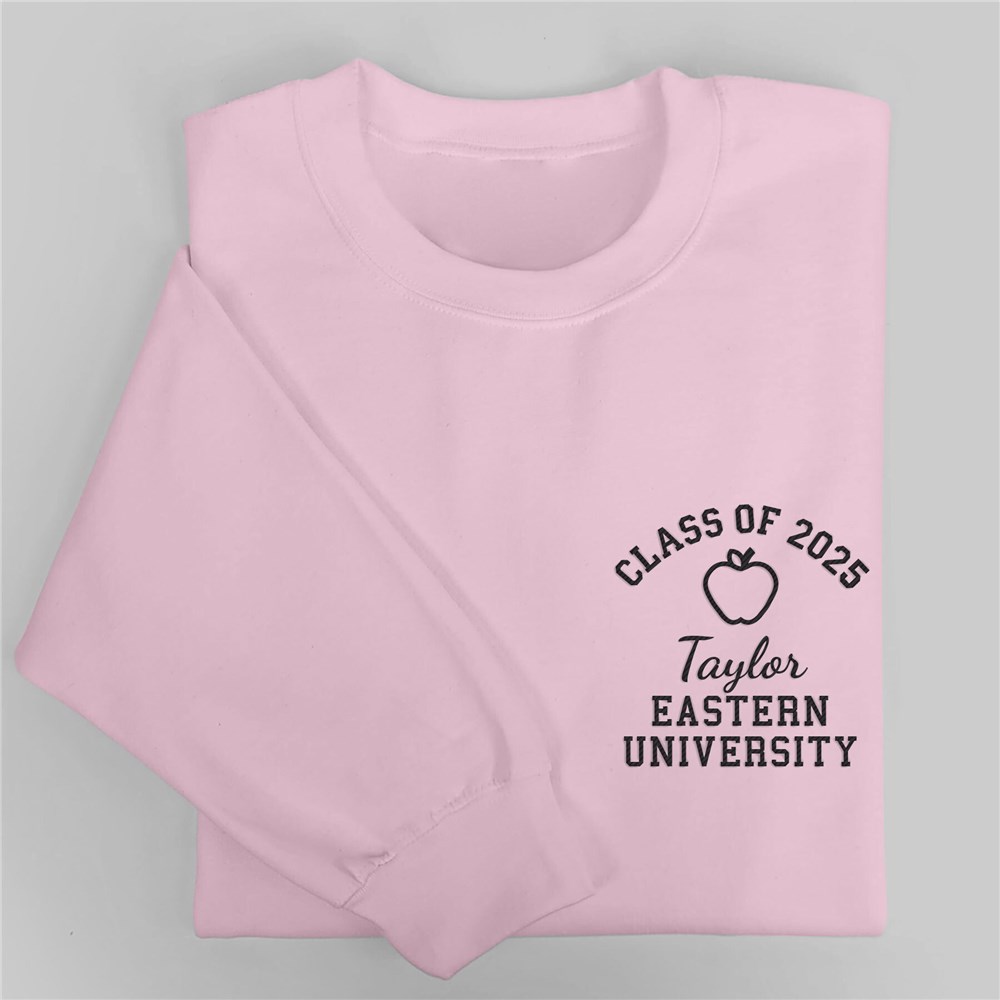 We will embroider this sweatshirt with any name, graduation year, any two message lines and a unique icon that represents your field of study.