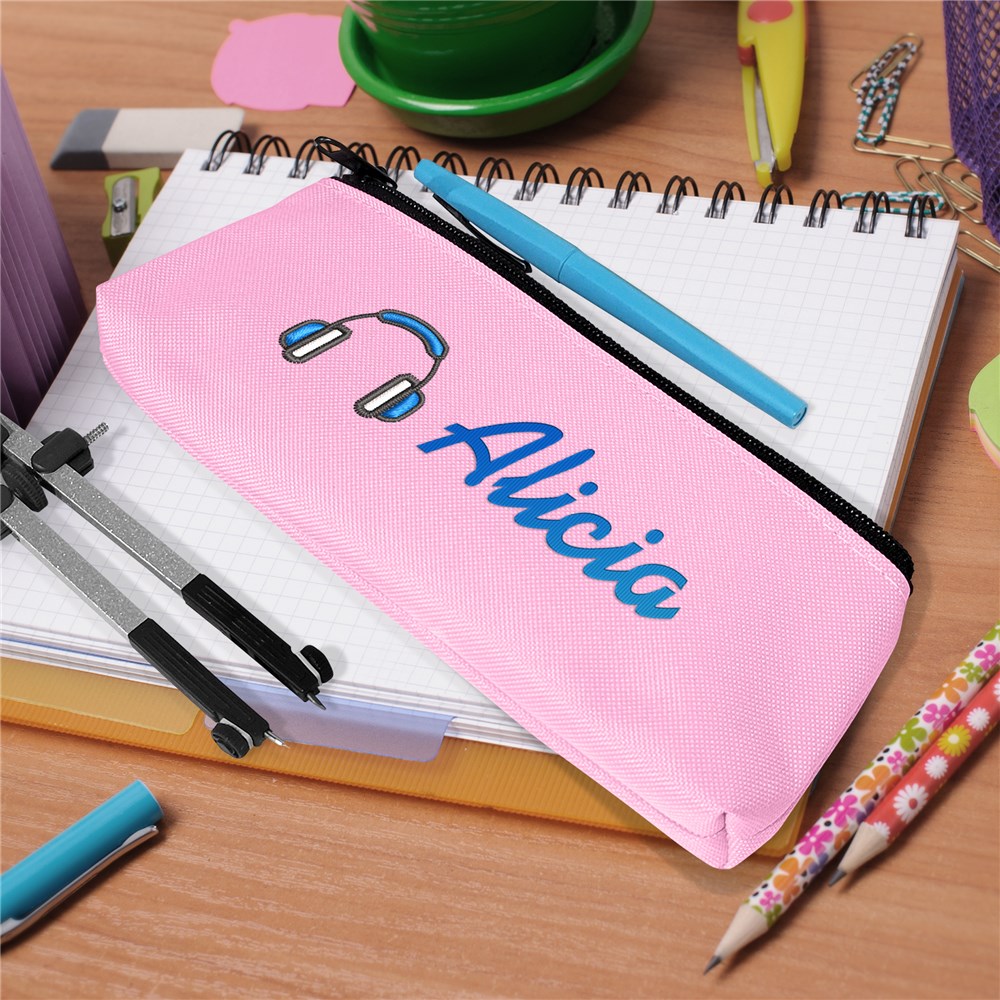Embroidered Icon And Name Pink Pencil Case