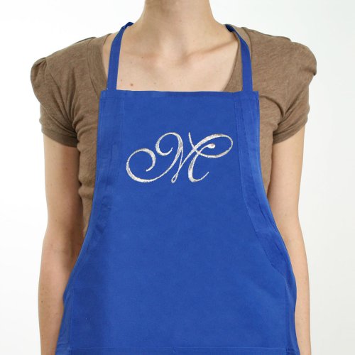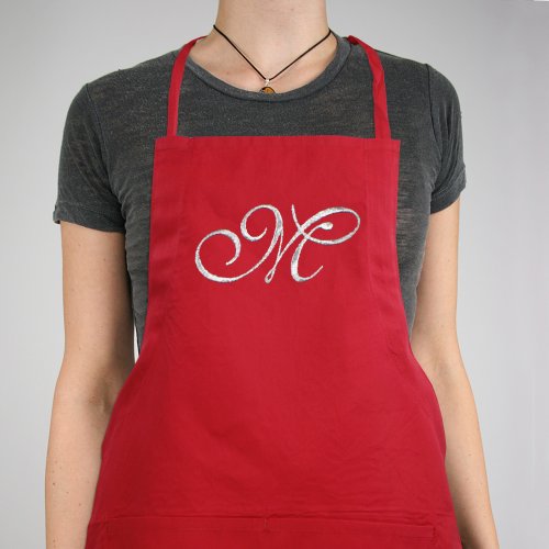 Protect your clothes and look fabulous at the same time in our personalized aprons embroidered with your initial. This custom chef apron is available in black, regal red or majestic blue and will be monogrammed with any initial in silver thread. This  custom bib apron measures 20” Wide x 30” Tall and features multiple pockets for convenient storage along with an adjustable neck strap for a comfortable fit.