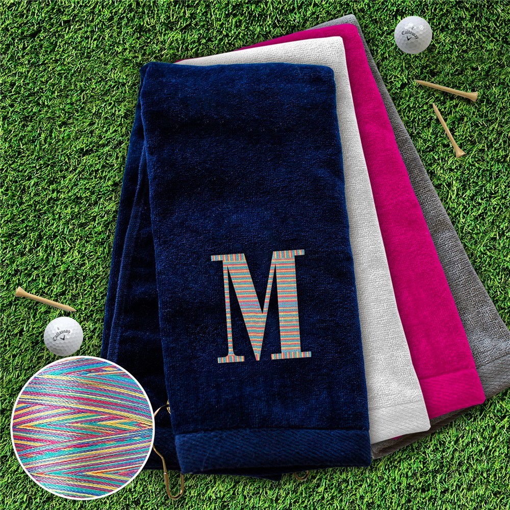 Golf Towel Embroidered with Initial in Rainbow Thread