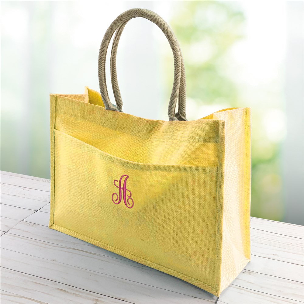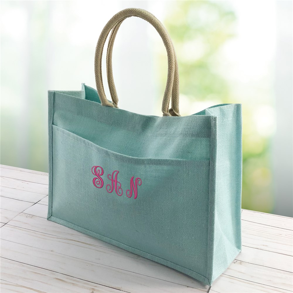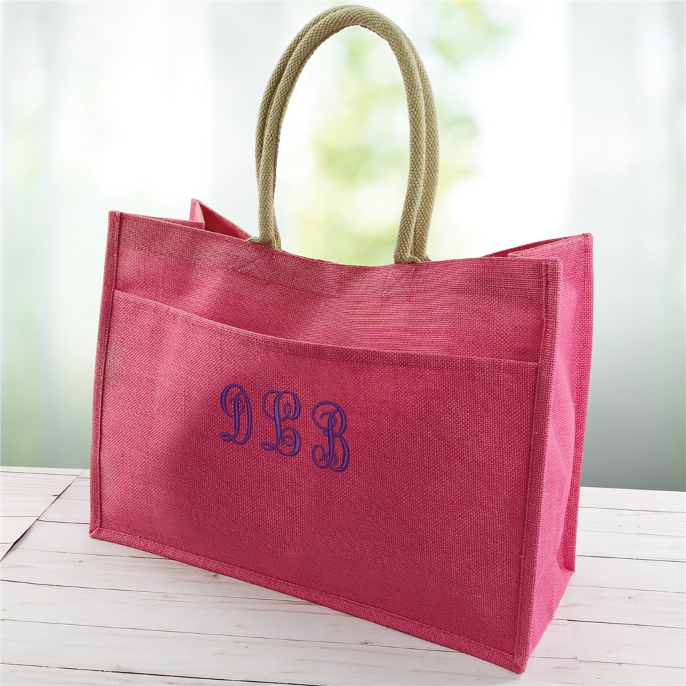 For the woman on the go, our Embroidered Initials Jute Bag With Pocket will have her prepared for anything and feeling great. Punchy colors liven up any outfit.