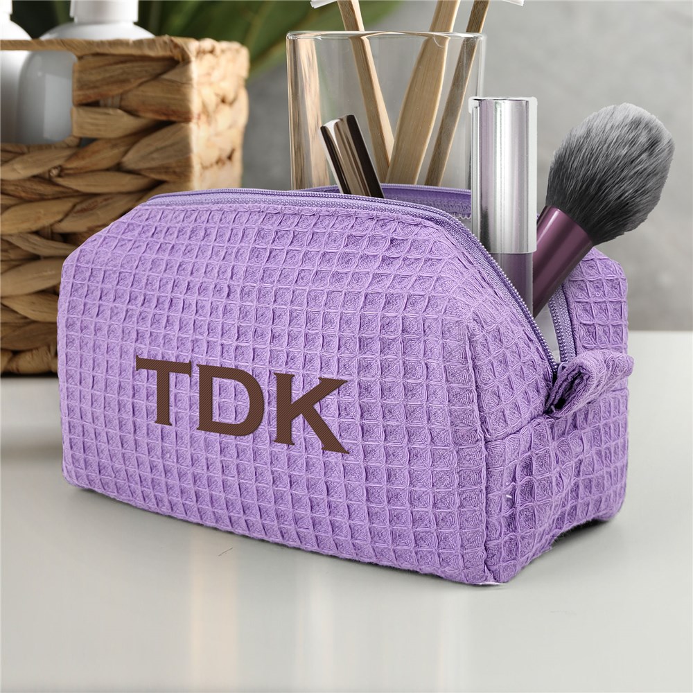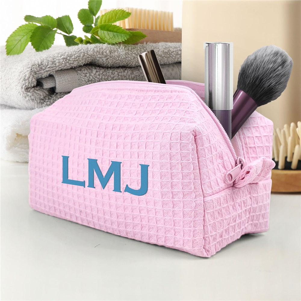 Timeless, elegant, and perfectly personal this Embroidered Initials Waffle Weave Cosmetic Bag is a chic way to keep essentials organized, whether at the home or on the go.Embroidered with any three initials in the thread color of your choice, it’s a beautiful blend of style and function.