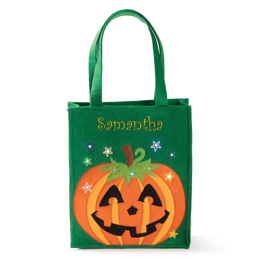 Embroidered Light Up Pumpkin Trick Or Treat Bag
