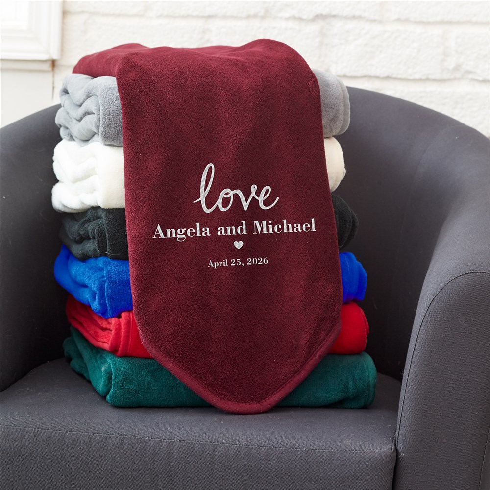 Love Fleece Throw Blanket Embroidered With Wedding Date