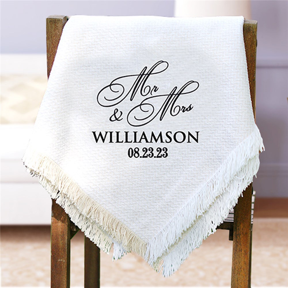 Mr. & Mrs. Script Embroidered Afghan | Personalized Afghan