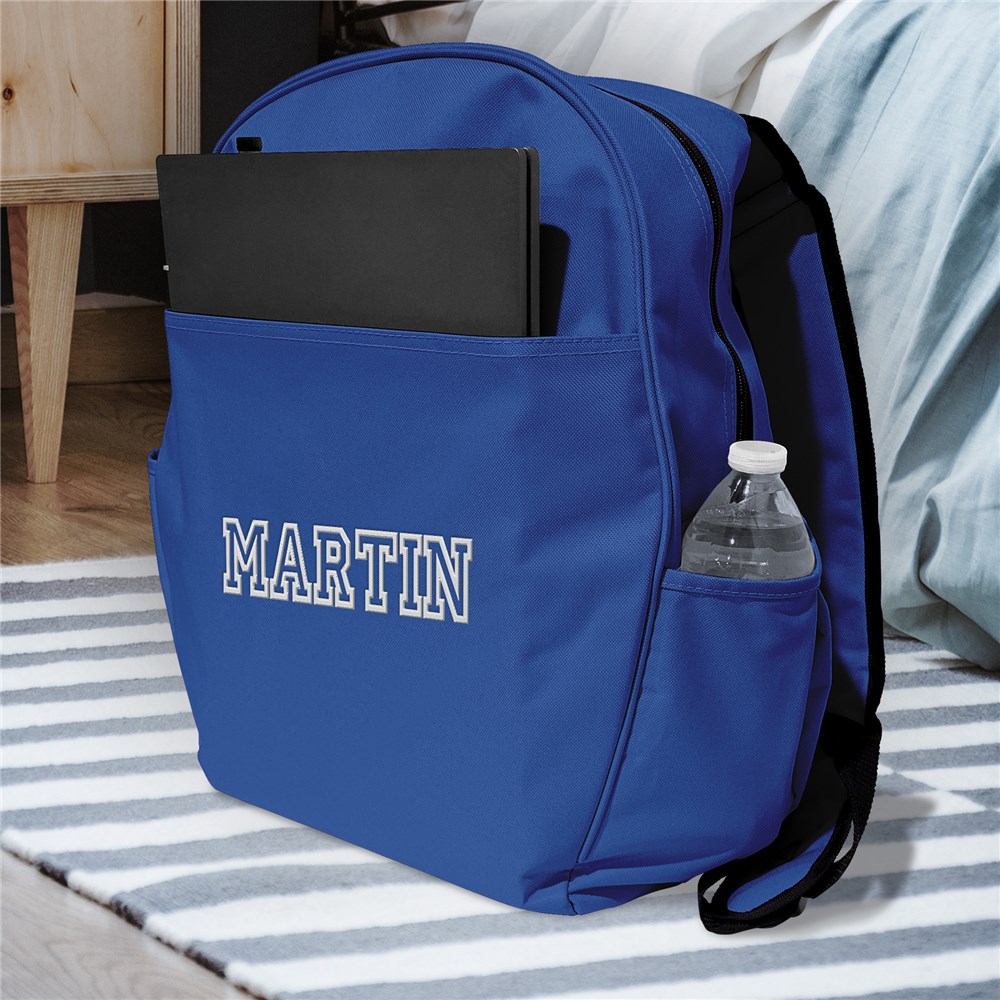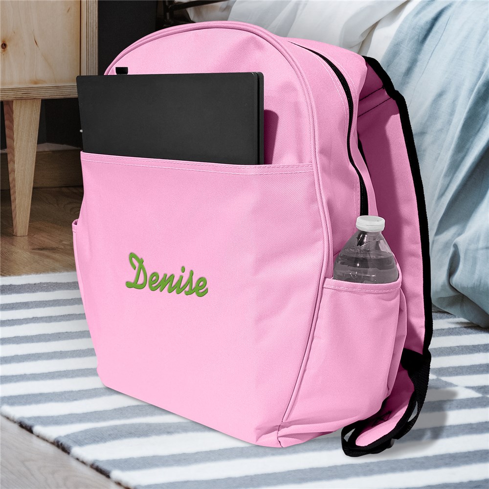 Make it personal with this custom embroidered backpack, featuring any name stitched in your choice of Block, College, or Script font. Whether it's for school, travel, camp, or everyday use, this bag combines practical design with a stylish, personalized touch.