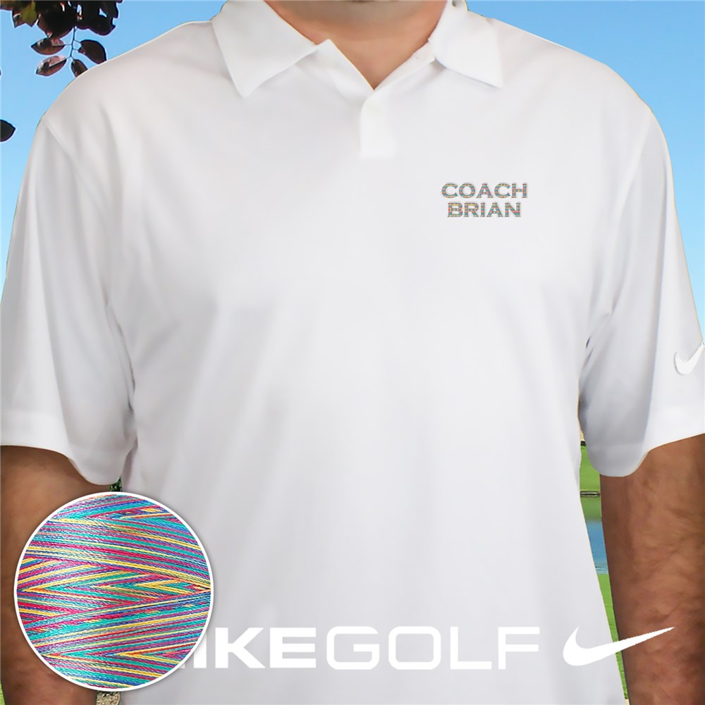 Embroidered Name Nike Dri-FIT Golf Polo with Rainbow ThreadEmbroidered Name Nike Dri-FIT Golf Polo with Rainbow Thread