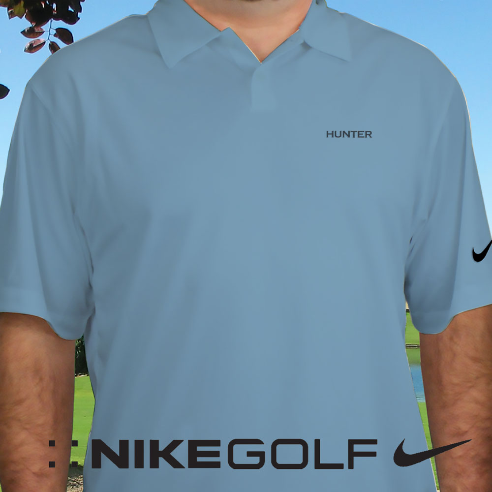 Get your favorite golfer an apparel gift that is sure to bring him luck on the course with our Embroidered Name Nike Dri-FIT Light Blue Polo Shirt.