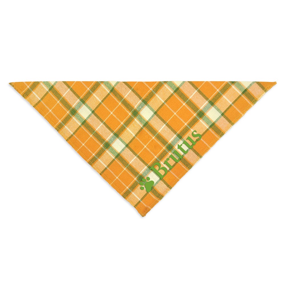From pumpkin patch outings to everyday walks, this orange plaid bandana brings warm, personalized style wherever your pet goes!