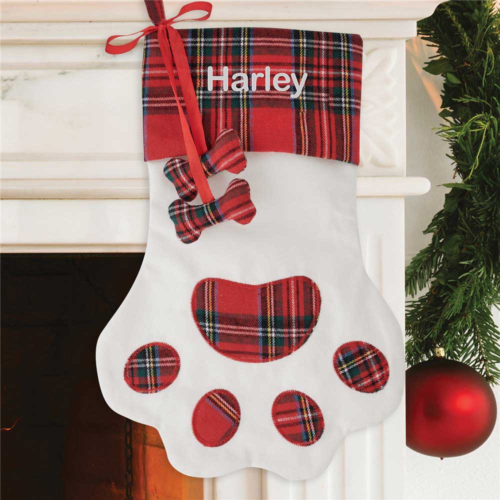 Use our Embroidered Plaid Paw Stocking to spoil your pet this Christmas with lots of yummy treats and fun toys!