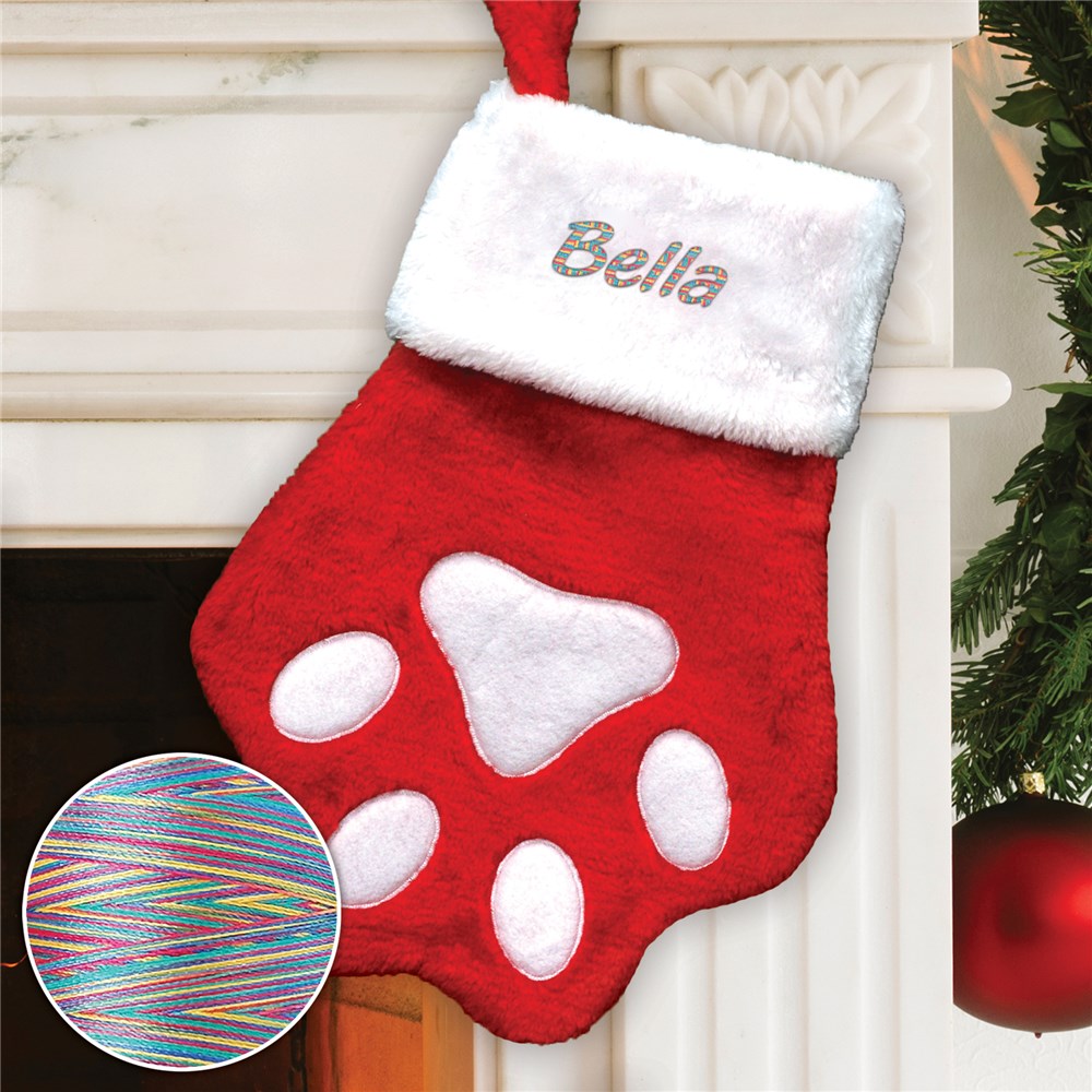Don't forget your four-legged furry friends this Christmas. Give them their own Red Dog Paw Christmas Stocking embroidered with their name so Santa will know exactly where to put their favorite toys and treats. This would make an excellent personalized gift for any pet lover on your shopping list! Your dog stocking measures 18.5" long. As with all of our Christmas stockings, this stocking can be personalized for free with any name.