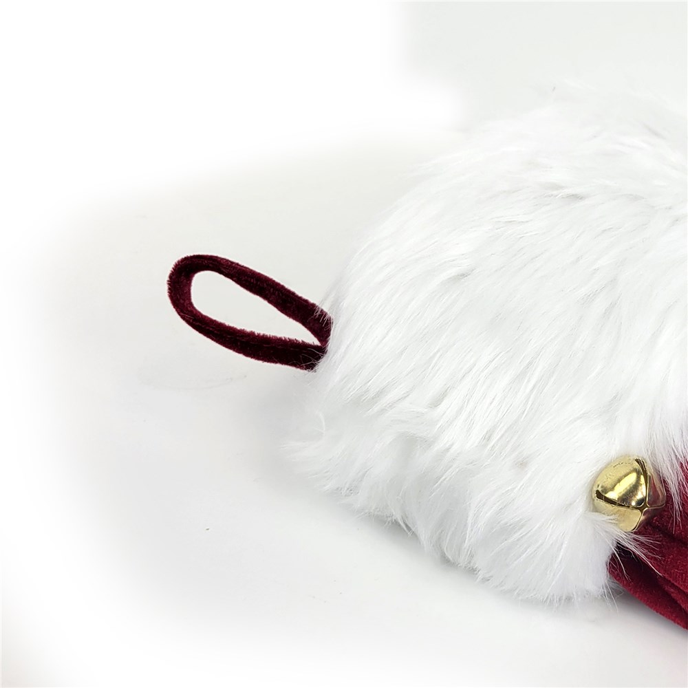 Any name will be embroidered on the fur-like cuff in matching deep red embroidery thread to make a wonderfully personal stocking.