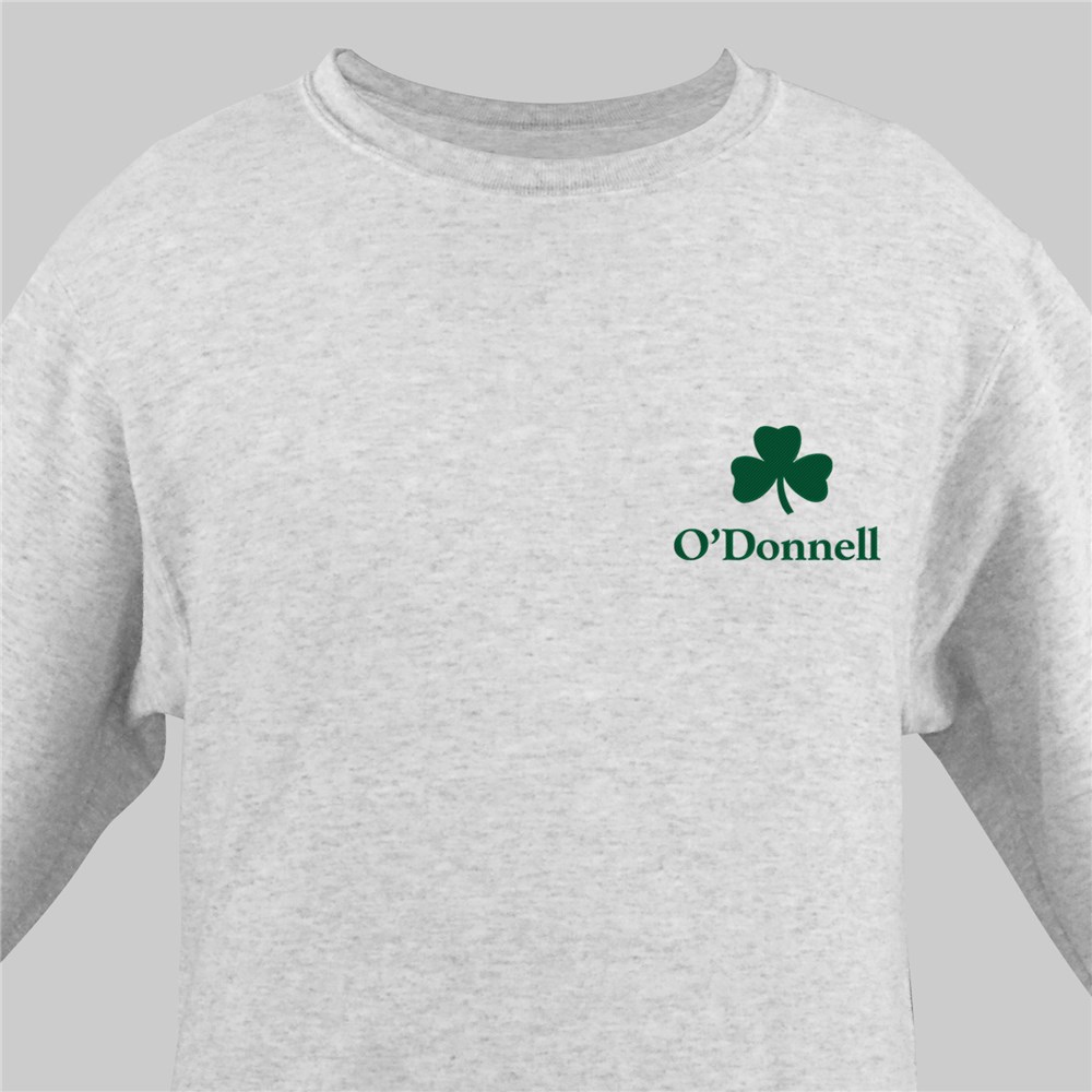 Featuring a cute shamrock, this sweatshirt can be personalized with any custom message line on the left chest.
