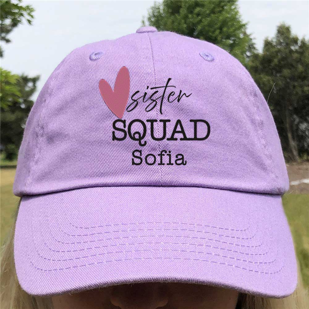 You and your sisters will look great together wearing our Embroidered Sister Squad Baseball Hat!