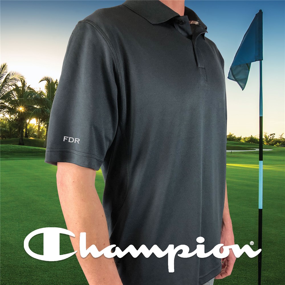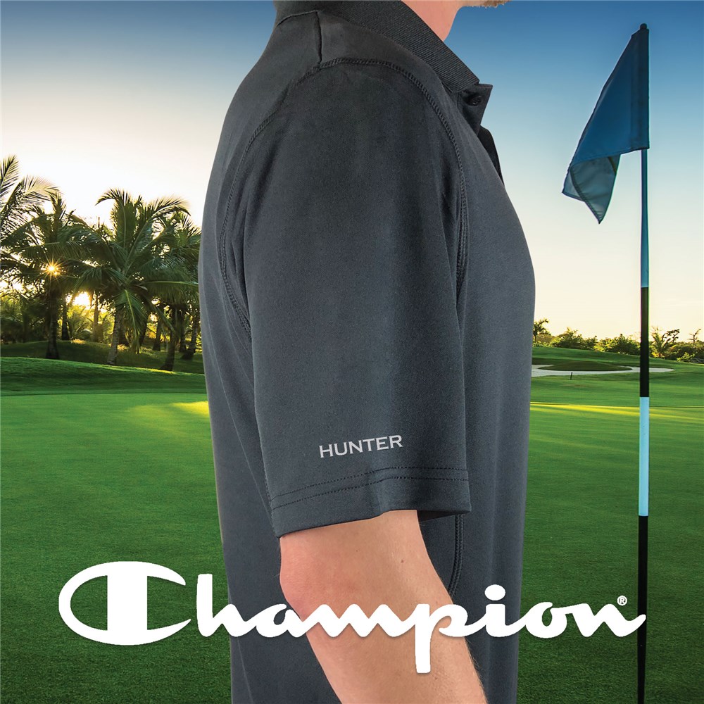 Your husband, dad or brother is sure to rock this Embroidered Sleeve Black Champion Polo Shirt out on the golf course.