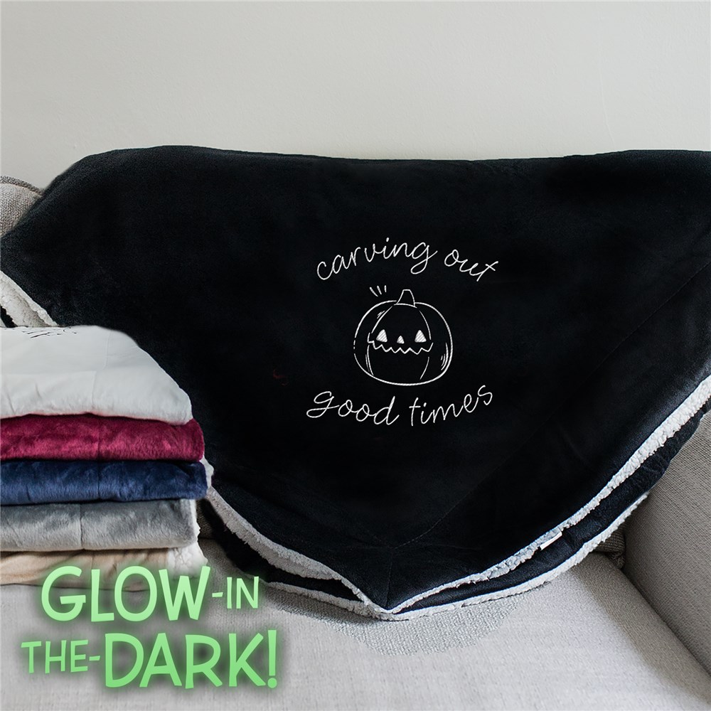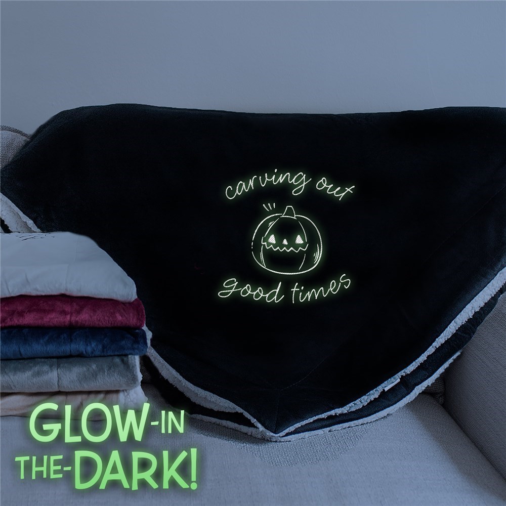 The weather's getting colder and the leaves are falling - it's time to cuddle up with our Embroidered Spooky Icons Sherpa Blanket with Glow in the Dark Thread to watch your favorite scary movies!