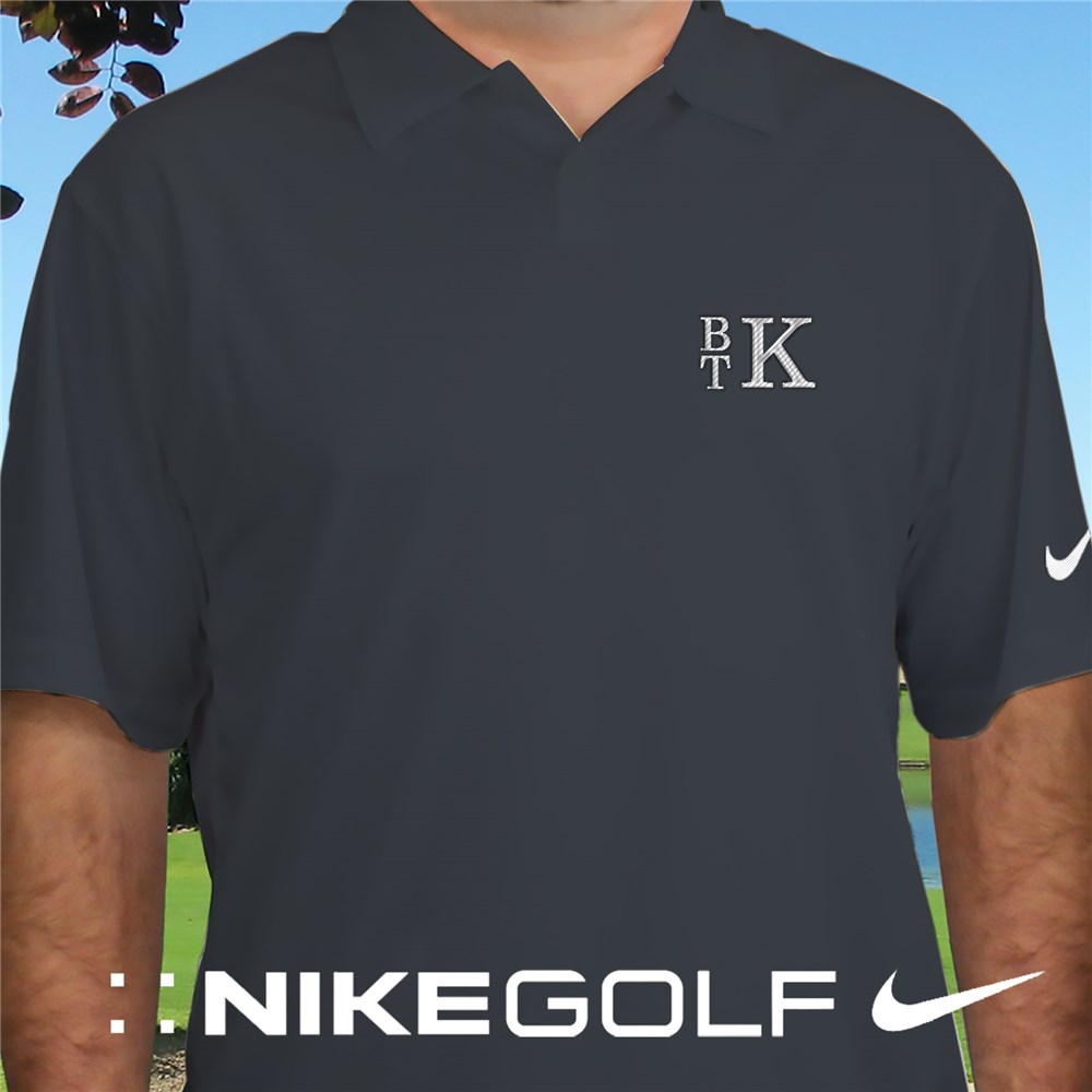 Anyone who's passionate about golf will be excited to add our Embroidered Stacked Monogram Nike Dri-Fit Gray Polo Shirt to their golf attire!