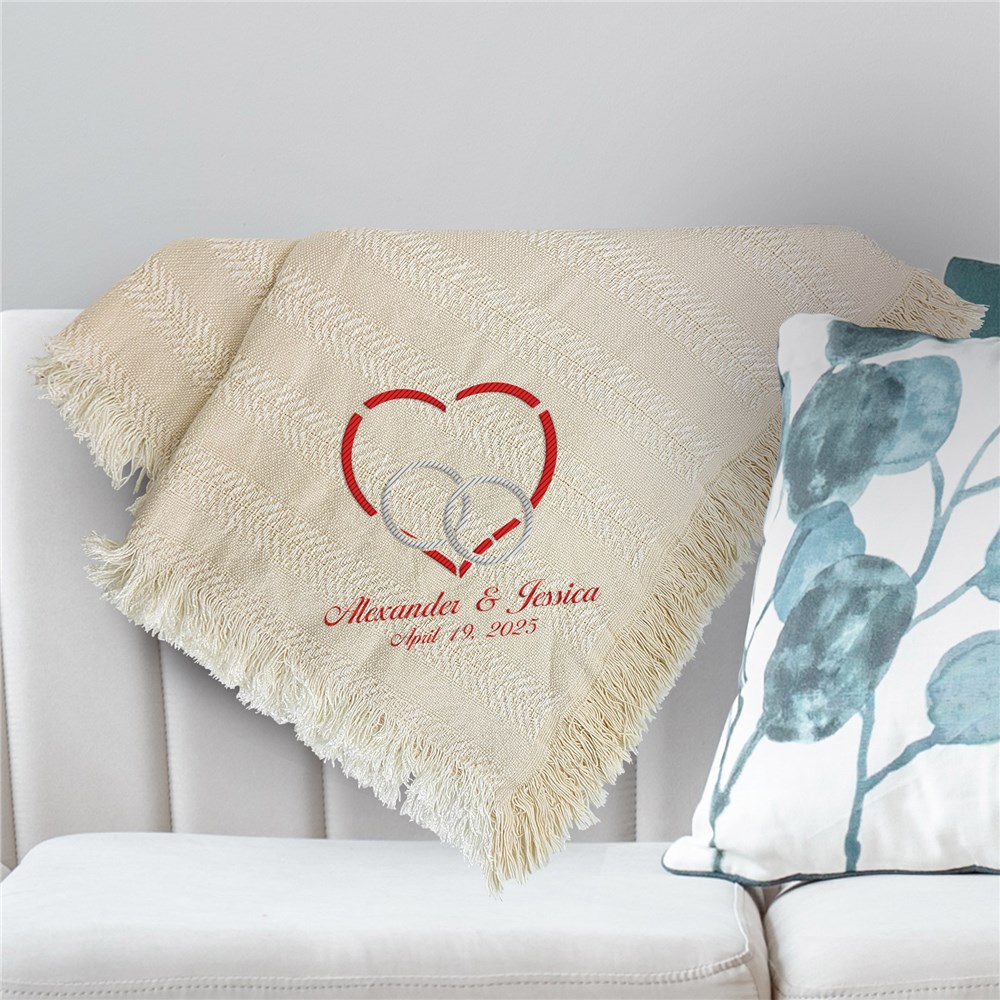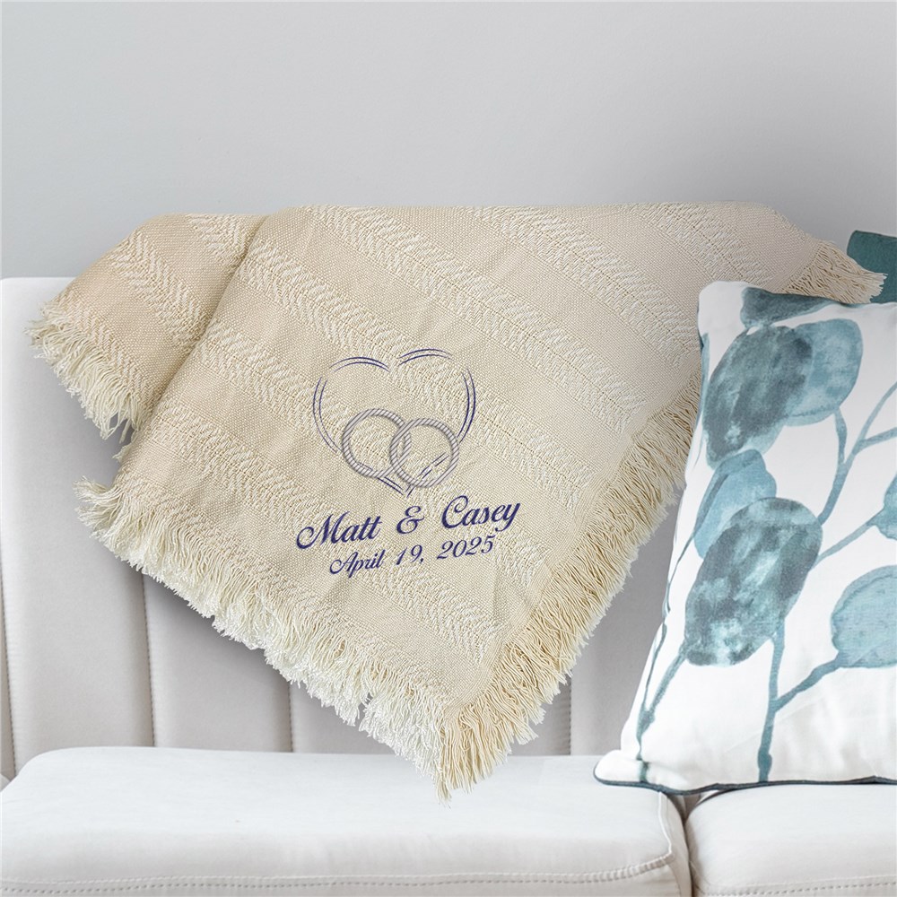 This Embroidered Wedding Heart And Rings Throw Blanket is a beautiful gift for a special couple.
