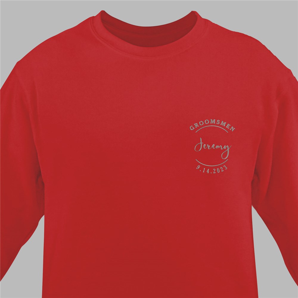 Order our Embroidered Wedding Party Sweatshirt for each member of your wedding party for a memento of this important and fun day!Personalize this sweatshirt with your choice of thread color, any wedding party title, their name, and date.