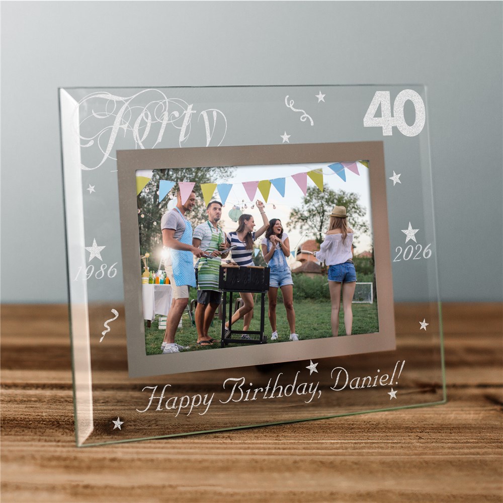 Birthday celebrations are full of excitement, happiness and joy. Create a memorable gift shared with near and dear ones and add it to this beautifully Engraved Birthday Personalized Picture Frames. This 40th Birthday Photo Frame is the most thoughtful birthday gift idea that is sure to make any birthday special. This Engraved Birthday Customized Picture Frames come in two great sizes. Easel back allows for desk display. Includes FREE Personalization! Personalize your Happy Birthday Picture Frame with any age, birth year, milestone year, and any one line custom message. (i.e. Happy Birthday, Sarah!)