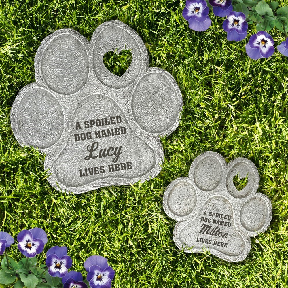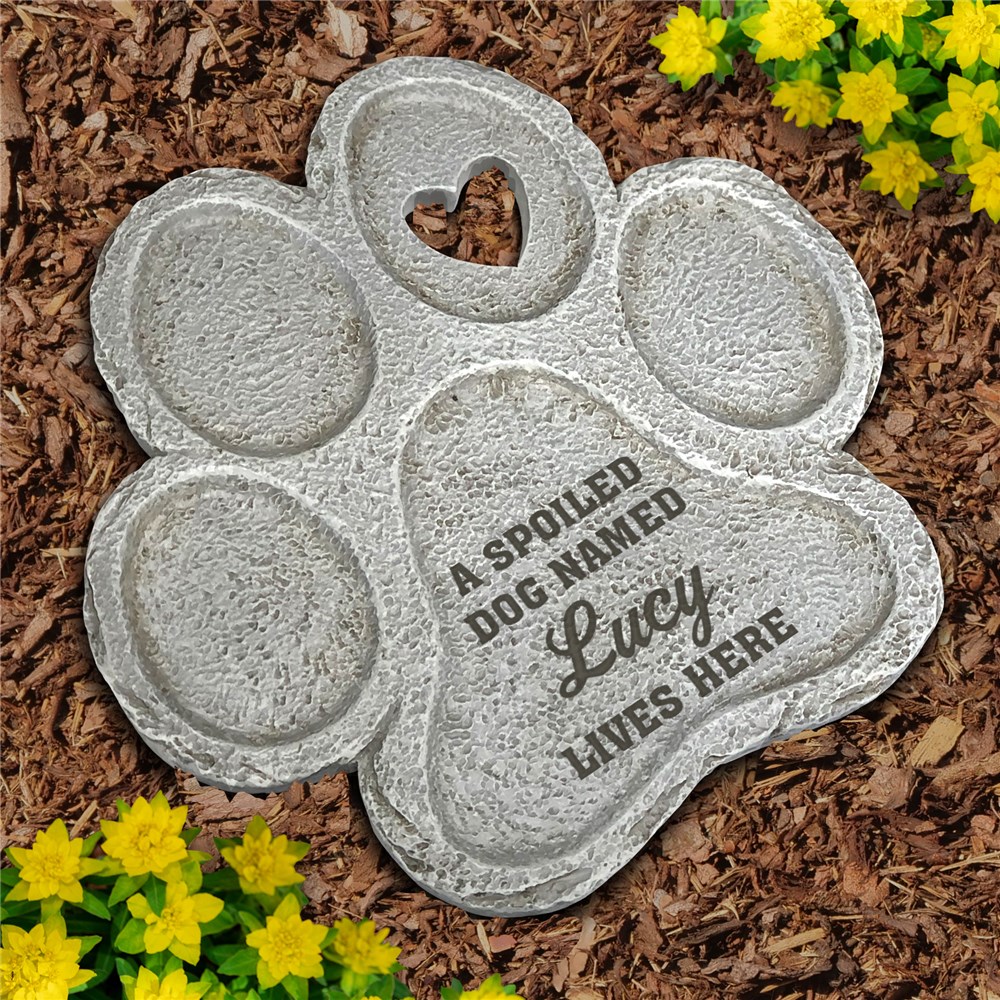 Dog owners will love displaying our Engraved A Spoiled Dog Paw Print Stone outside their home!