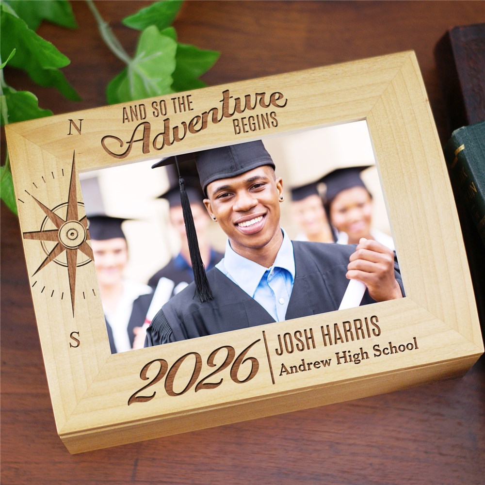 Give your graduate a gift that is as memorable as their college career with our Engraved Adventure Begins Photo Keepsake. Our wooden Personalized Keepsake Box is engraved for you free with any year and 2 custom message lines. Makes a great gift for any friends or family that are Graduating!