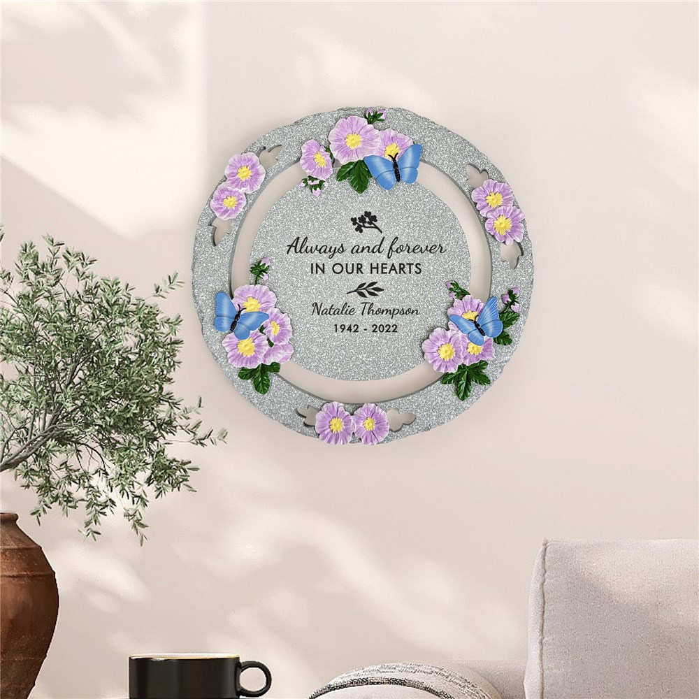 Honor the memory of your loved one with this Engraved Always And Forever In Our Hearts Memorial Butterfly Garden Stone.