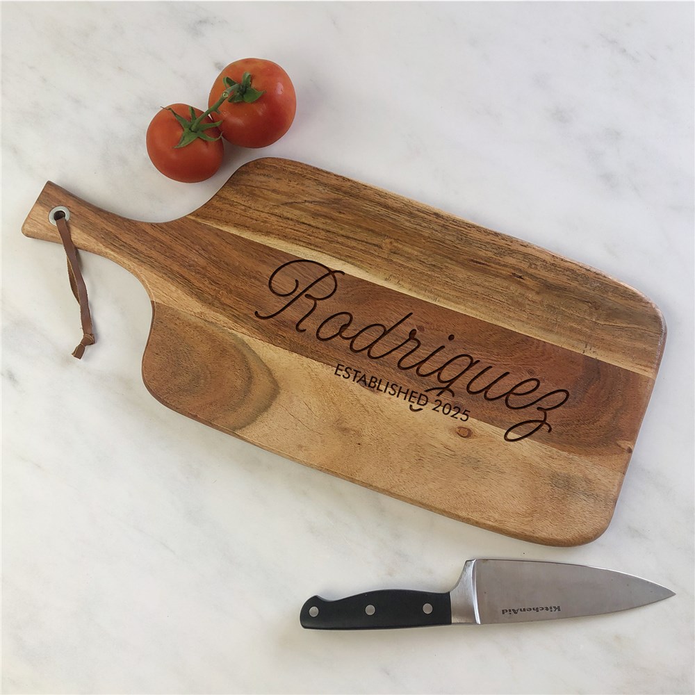 Engraved Any Family Name Acacia Paddle Cutting Board