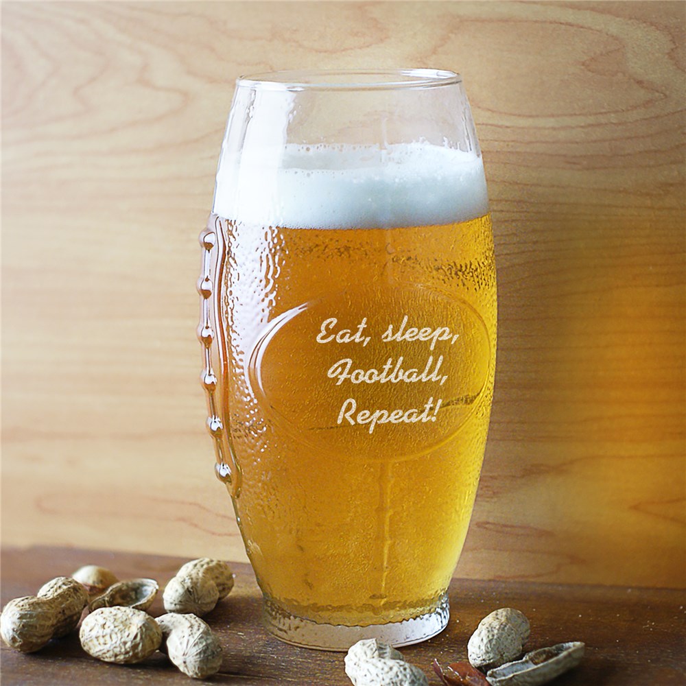 Does your football team make you drink? This Engraved Any Message Football Glass is the perfect solution.