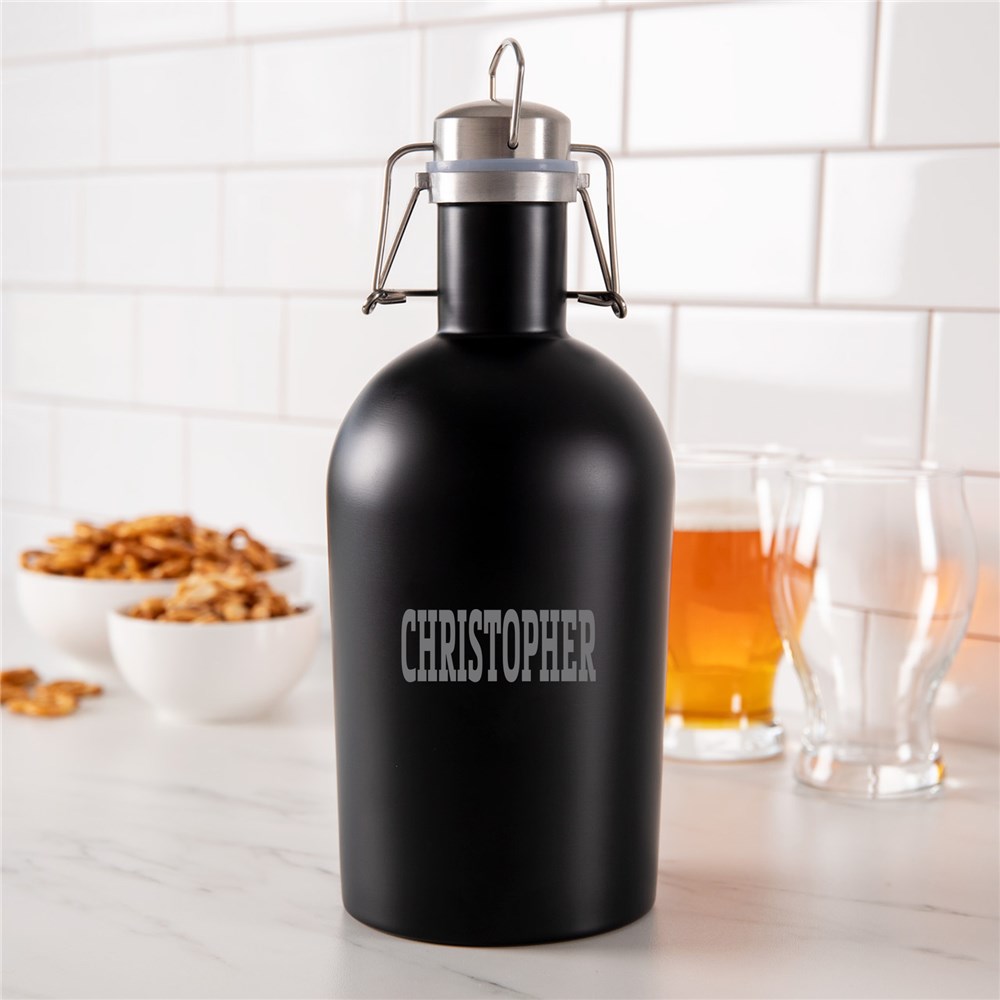 Bring your favorite beer to the party with our Engraved Any Name Stainless Steel Growler.
