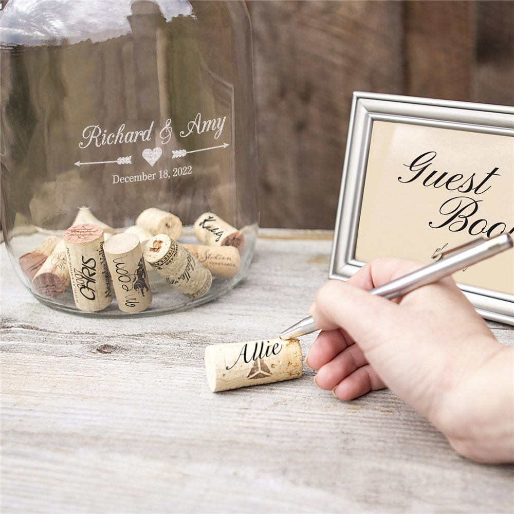 Our Engraved Arrows and Heart Wedding Glass Growler can serve as an alternative guestbook at your wedding reception!