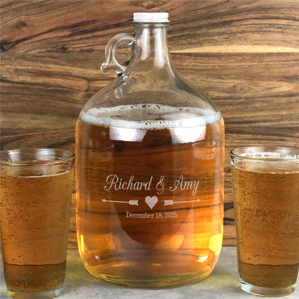 Engraved Arrows and Heart Wedding Glass Growler Engraved Arrows and Heart Wedding Glass Growler Engraved Arrows and Heart Wedding Glass Growler