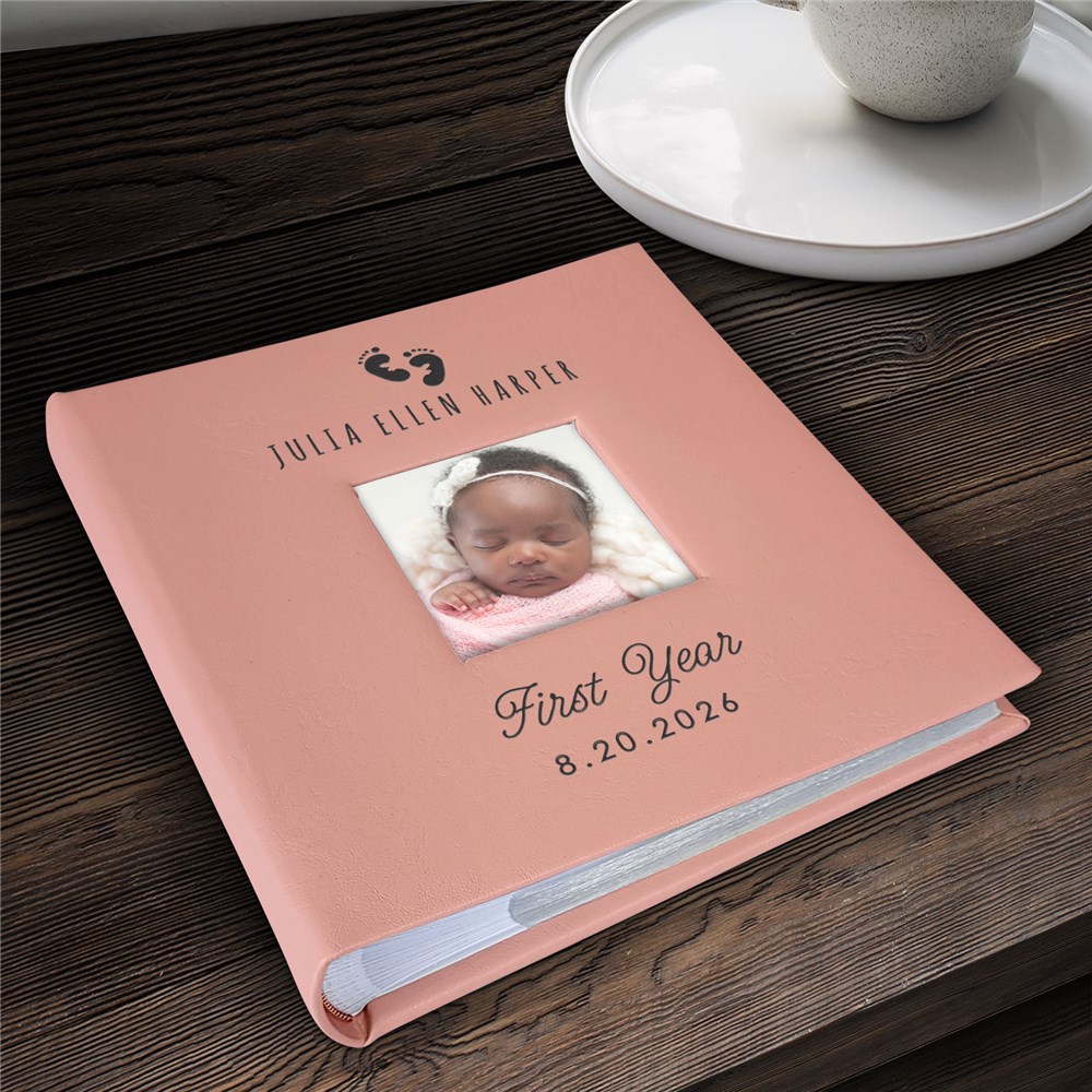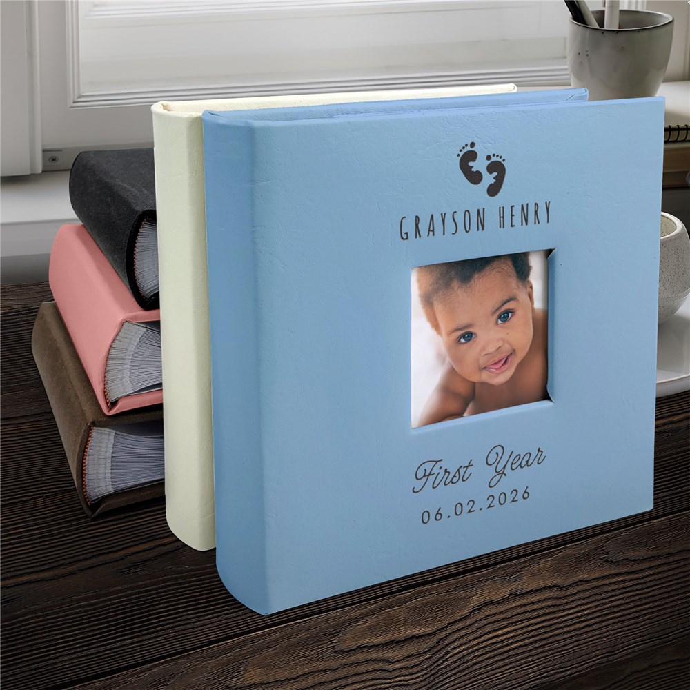 Celebrate your little one's first year of life with this Engraved Baby Feet Leatherette Photo Album.