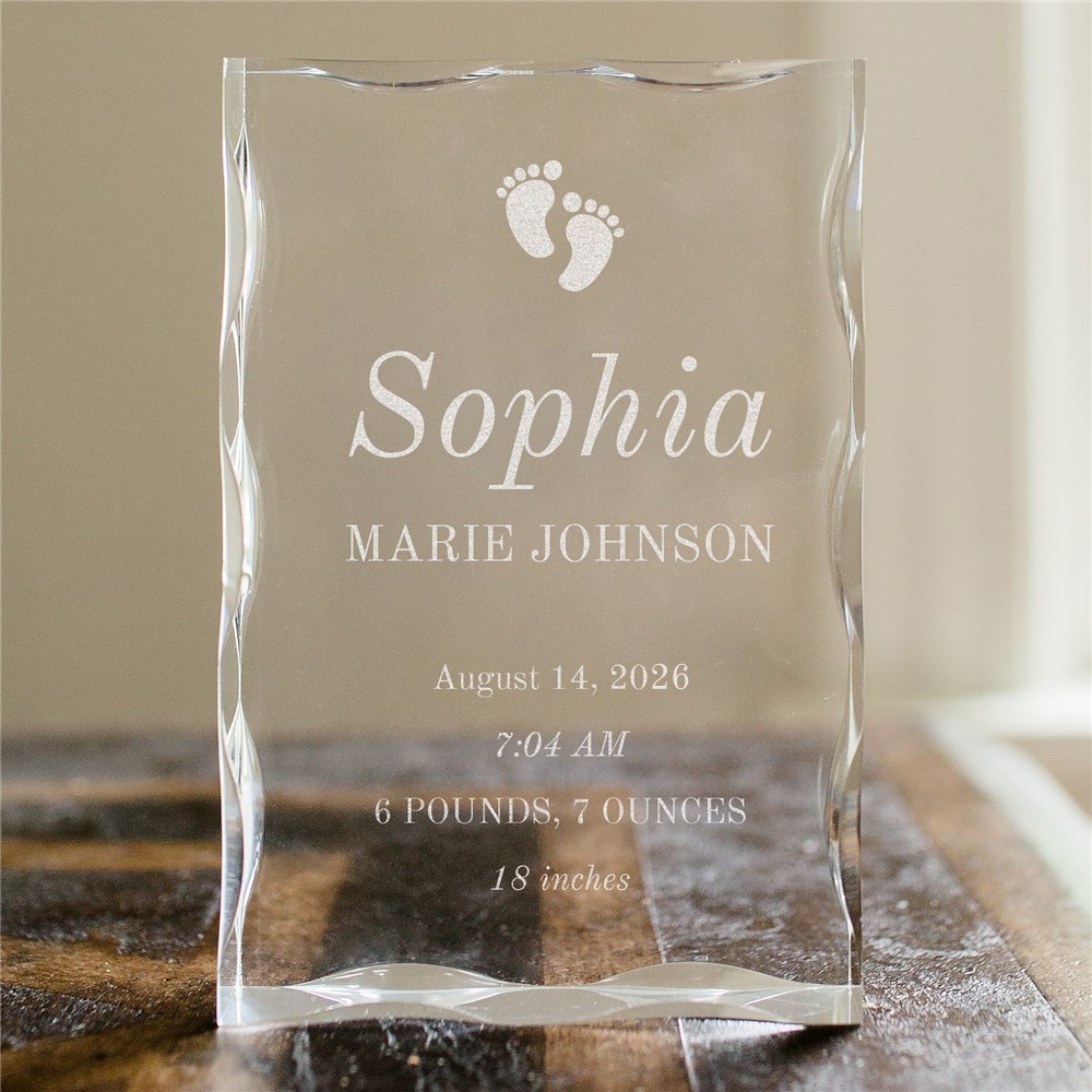 Create a keepsake that holds on to the day he or she was born forever. This crystal clear keepsake block makes wonderful Newborn Baby Gifts for any new mom, dad and baby to enjoy.