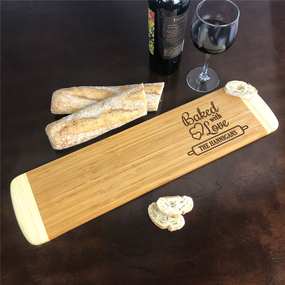 Serve homemade bread you've made as a family with our Engraved Baked with Love Bread Board.
