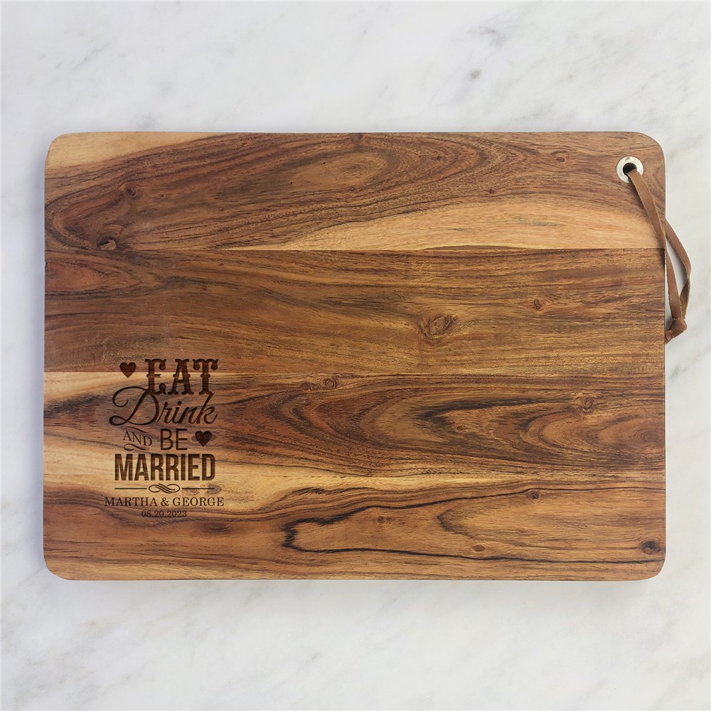 Newlyweds will love cooking together using our Engraved Be Married Acacia Cutting Board.
