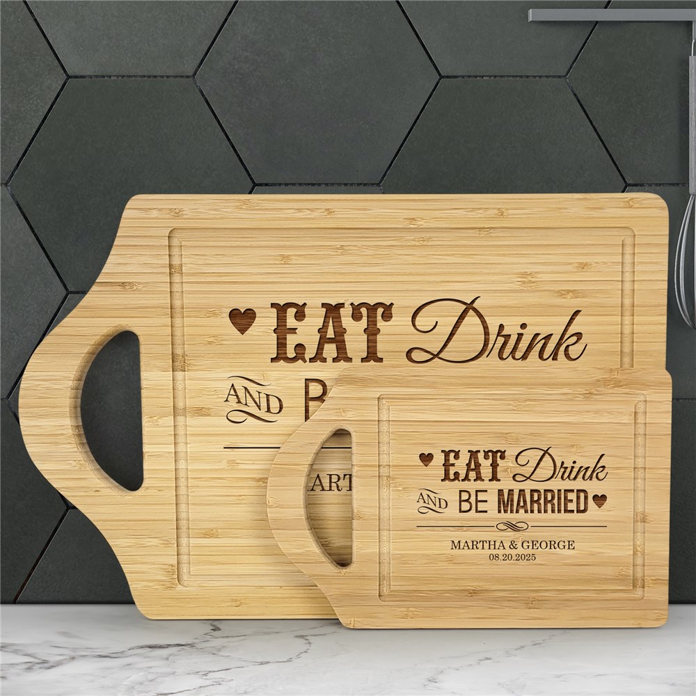Our engraved "Eat, Drink, and Be Married" carving board is perfect for those newlyweds who enjoy whipping up the best meals at home.