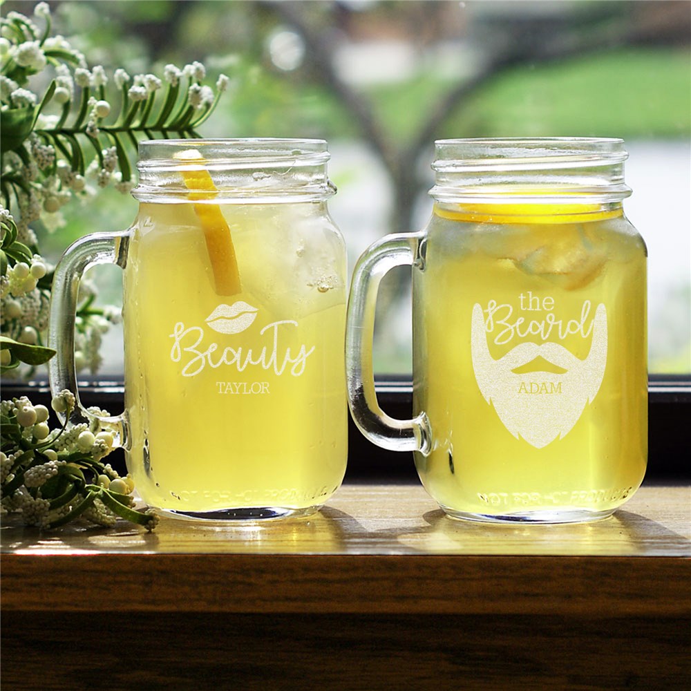 Engraved Beauty and The Beard Mason Jar Set | Valentine Personalized Mason JarsEngraved Beauty and The Beard Mason Jar Set | Valentine Personalized Mason Jars