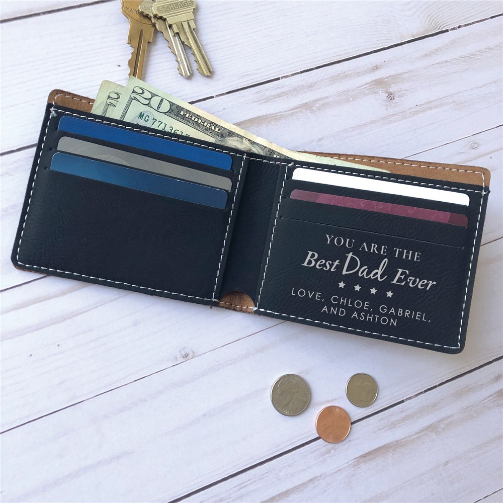 Engraved Best Dad Ever Leatherette WalletEngraved Best Dad Ever Leatherette Wallet